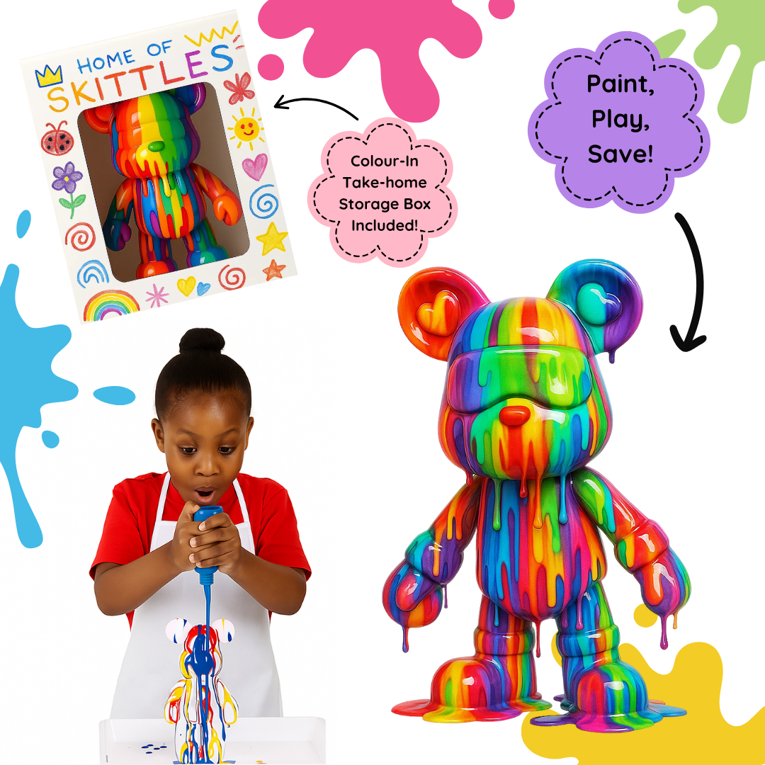 Pour, Splash & Save with our Colour Splash Bear Money Box Kit! This exciting, hands-on art experience combines colour exploration and functional design. The kit features a money box bear mould that kids bring to life by pouring vibrant paints over it to create mesmerising marble patterns. With a handy spill tray, mixing cup, and take-home box included, this kit is both fun and practical—an artwork they can use every day!