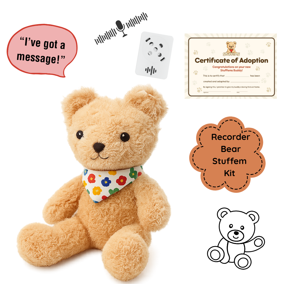 Our Voice Recorder Stuffem Bear offers children a magical twist on the classic build-a-bear experience! Alongside everything needed to stuff and decorate their very own plush bear, this kit includes a recordable sound box that lets each child add a special voice message—bringing an extra layer of meaning, connection and fun to their cuddly creation.